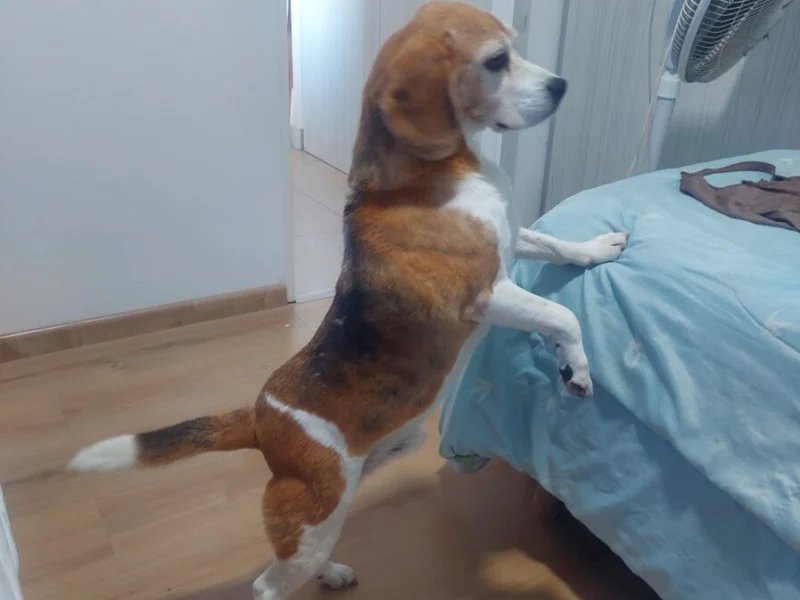Es un Beagle macho castrado de 8 años